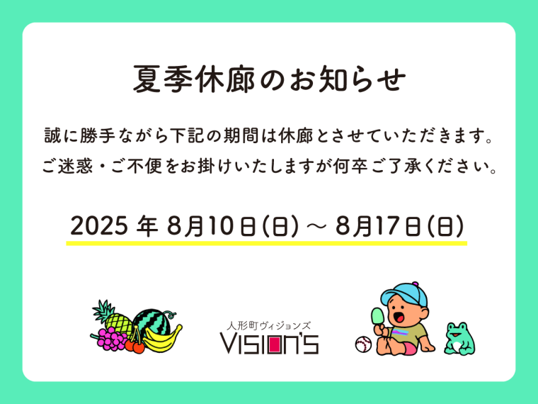 夏季休廊期間 2025年8月10日(日)― 8月17日(日)